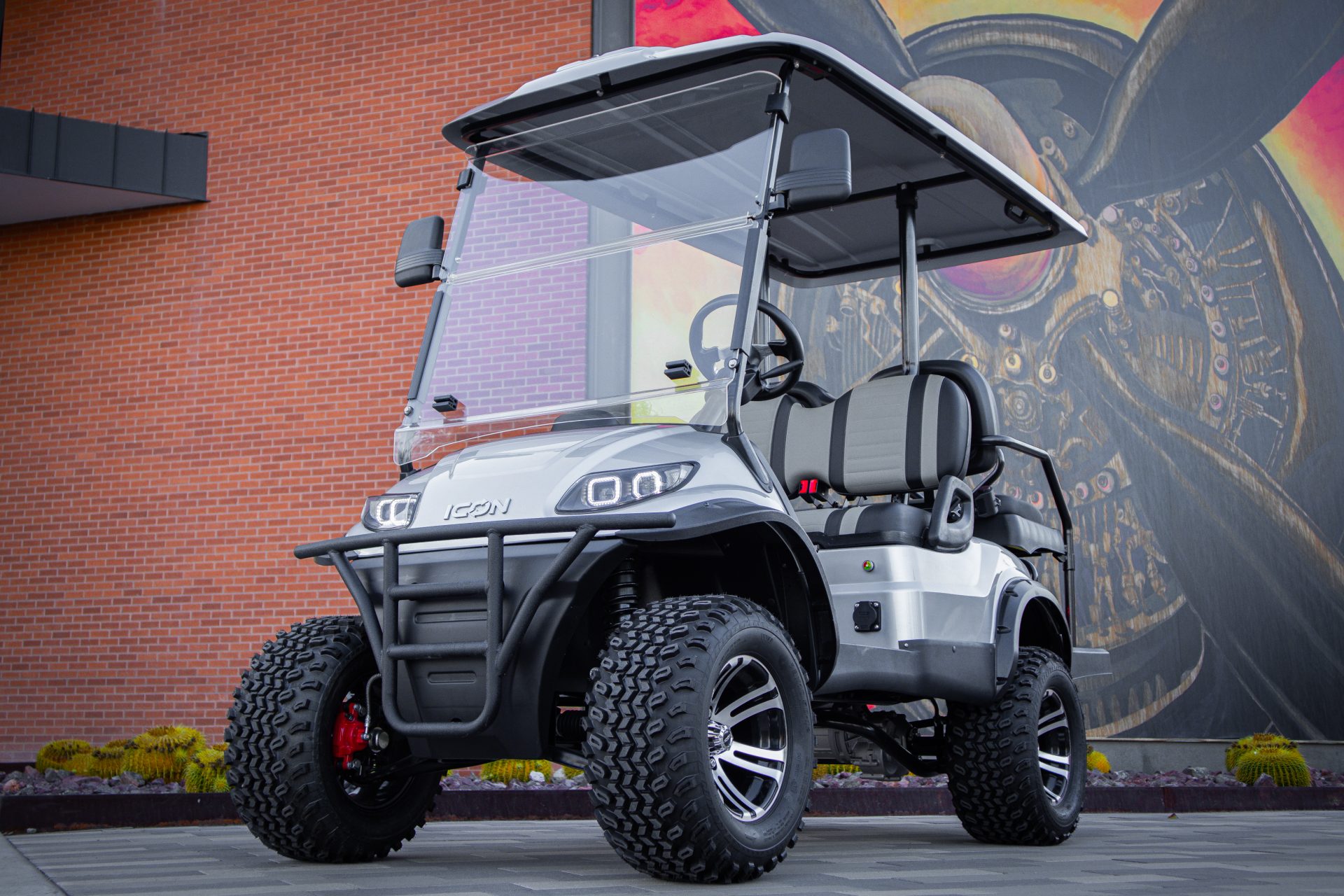 Step into the future of leisurely transport with the brand-new 2025 ICON i40, a sleek and innovative 4-passenger golf cart that blends style, comfort, and cutting-edge technology. Perfect for cruising around the golf course or exploring your neighborhood, this state-of-the-art vehicle promises an unforgettable ride every time. Powered by a robust Lithium-Ion battery, the ICON i40 offers exceptional efficiency and reliability, ensuring smooth and quiet operation. Say goodbye to the hassles of frequent charging and hello to extended adventures, thanks to its advanced power system. This eco-friendly golf cart not only delivers outstanding performance but also helps you do your part for the environment. The ICON i40 is designed with both driver and passenger comfort in mind. Its spacious seating capacity comfortably accommodates up to four passengers, making it ideal for family outings or social events. The plush seats provide ultimate comfort, while the ergonomic design ensures a relaxed and enjoyable ride. The aesthetics of the ICON i40 are as impressive as its performance. With a modern and stylish exterior, this golf cart is sure to turn heads wherever it goes. The attention to detail in its craftsmanship reflects ICON’s commitment to quality and innovation. Whether you’re navigating the fairway or simply enjoying a leisurely ride around the community, the 2025 ICON i40 promises a driving experience like no other. Discover the perfect blend of luxury, innovation, and sustainability with this brand-new golf cart. Ready to redefine your journey? The ICON i40 is waiting to take you there.